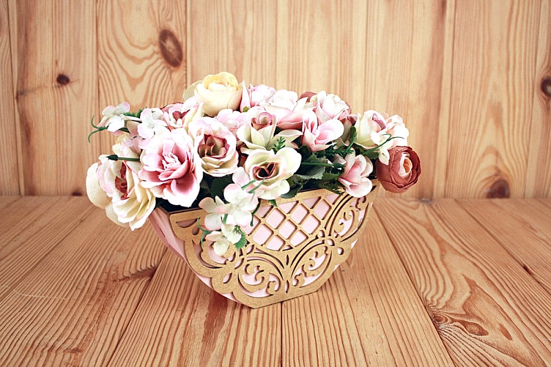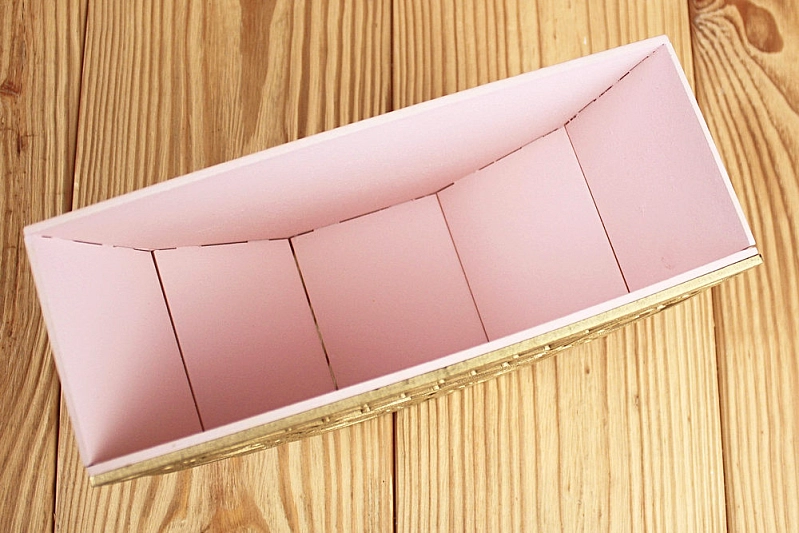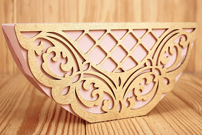 ПУ727-02-4501 Подарочная упаковка "Пиала" (21*8*10) МДФ 3мм, окрашен., оформл., Пудровый-золото, 1 шт.