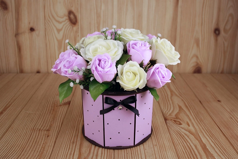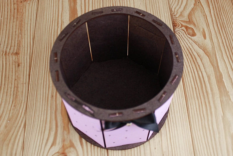 ПУ664-02-4318 Подарочная упаковка "Ретро" круглая (17*17*13) МДФ 3мм, окрашен., оформл., Лавандовый-черный, 1 шт.