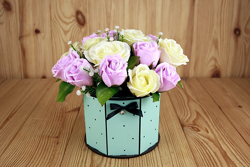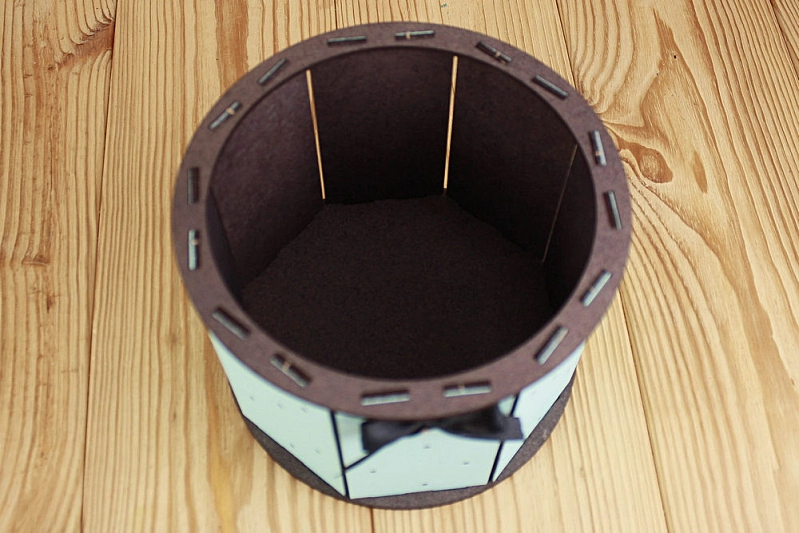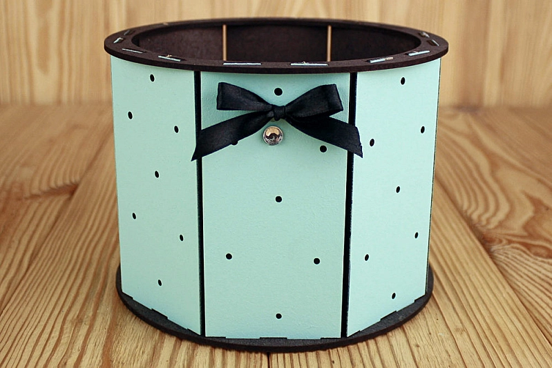 ПУ664-02-4118 Подарочная упаковка "Ретро" круглая (17*17*13) МДФ 3мм, окрашен., оформл., Тиффани пастель-черный, 1 шт.