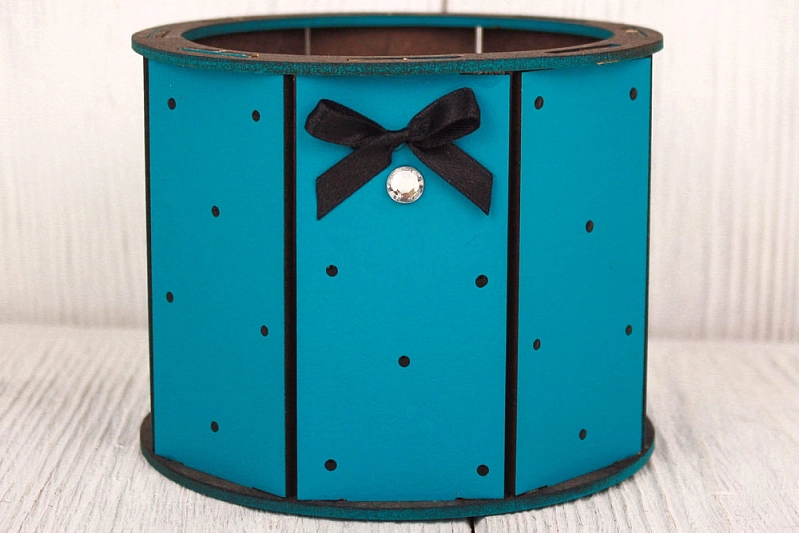 ПУ703-02-2448 Подарочная упаковка "Ретро" МИНИ (13*13*10) МДФ 3мм, окрашен., оформл., Бирюзовый-Эбеновое дерево, 1 шт.