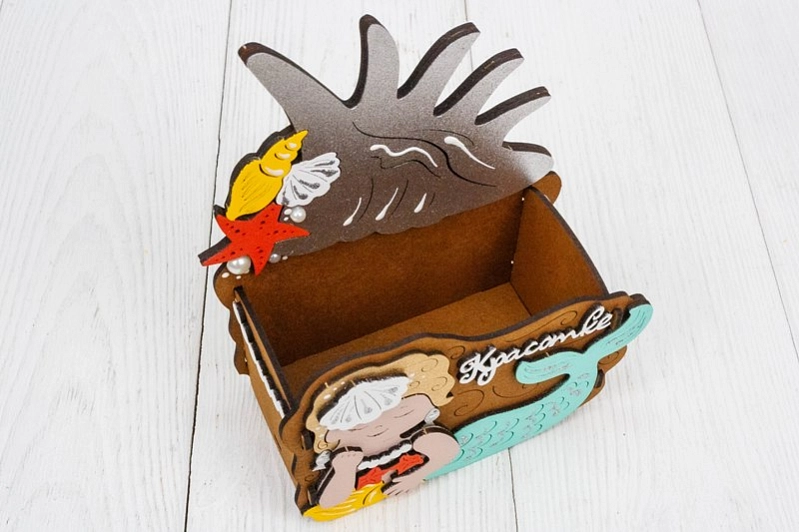 Ищете оригинальный способ преподнести подарок близкому человеку? Подарочная упаковка "Русалка" из МДФ – это прекрасный выбор! 🎁 Эта очаровательная коробочка выполнена в форме сказочной русалки, что делает ее идеальной для подарков на морскую тематику, дней рождений или просто для создания праздничной атмосферы.