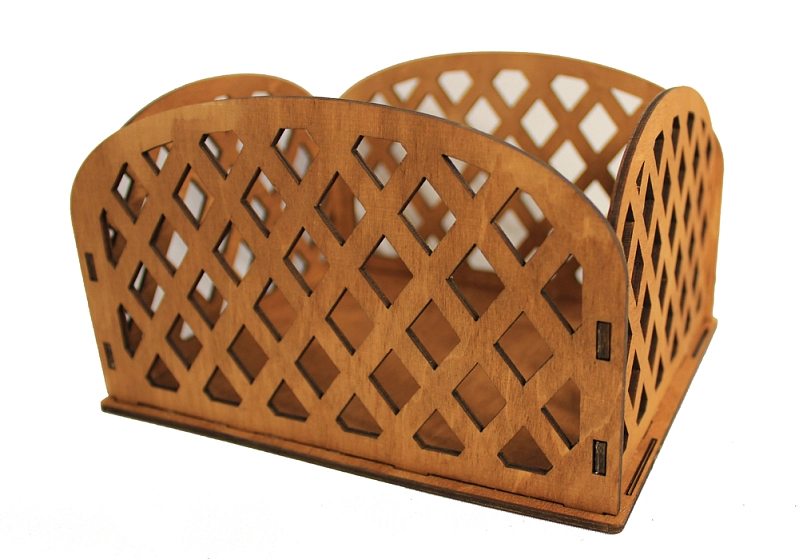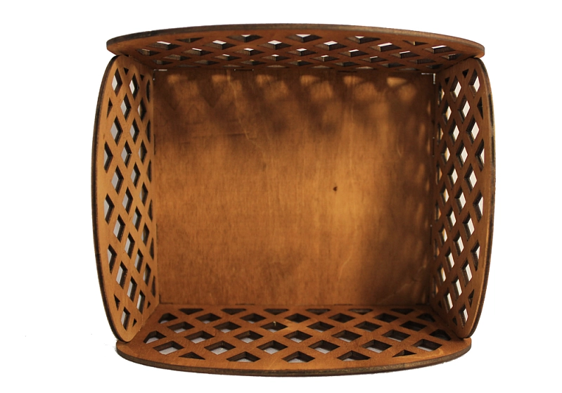 ПУ171-00-3737 Подарочная упаковка с решеткой, с округлыми краями (17,5*15*10,5) Фанера 3мм, окрашен. морилкой, Дуб, 1 шт.
