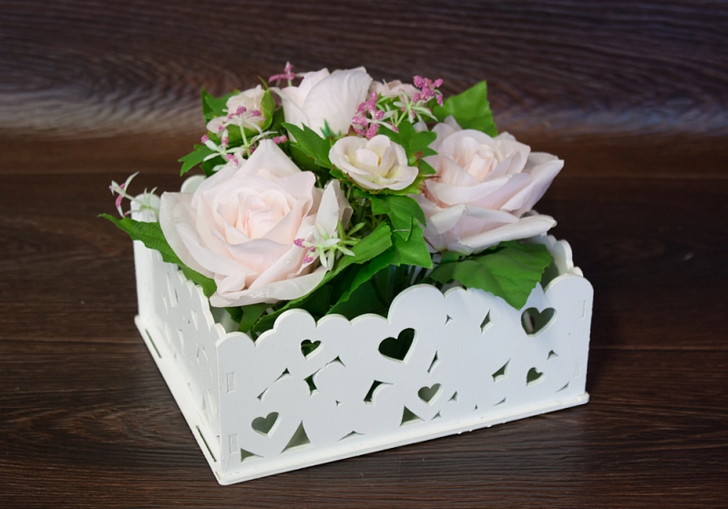 ПУ179-02-0303 Подарочная упаковка с сердцами (17,5*15*8) МДФ 3мм, окрашен., Белый, 1 шт.