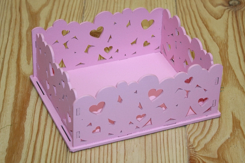 ПУ179-02-0505 Подарочная упаковка с сердцами (17,5*15*8) МДФ 3мм, окрашен., Розовый, 1 шт.