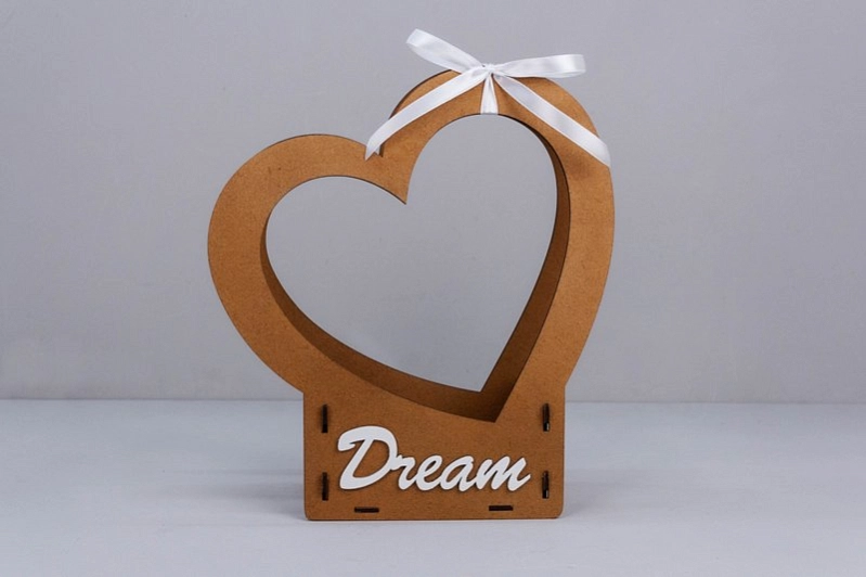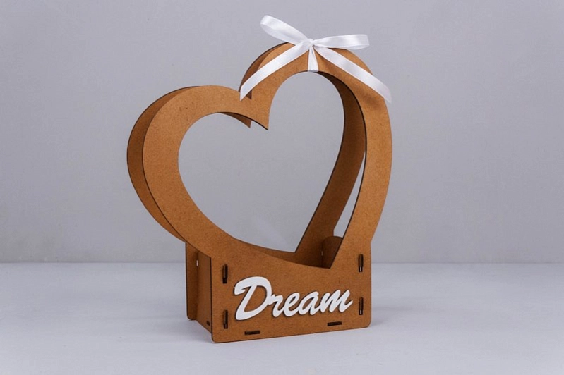ПУ828-02-3703 Подарочная упаковка-сердце "Dream" (24*10*27,5) МДФ, окрашен. морилкой, оформл., Дуб-белый, 1 шт.