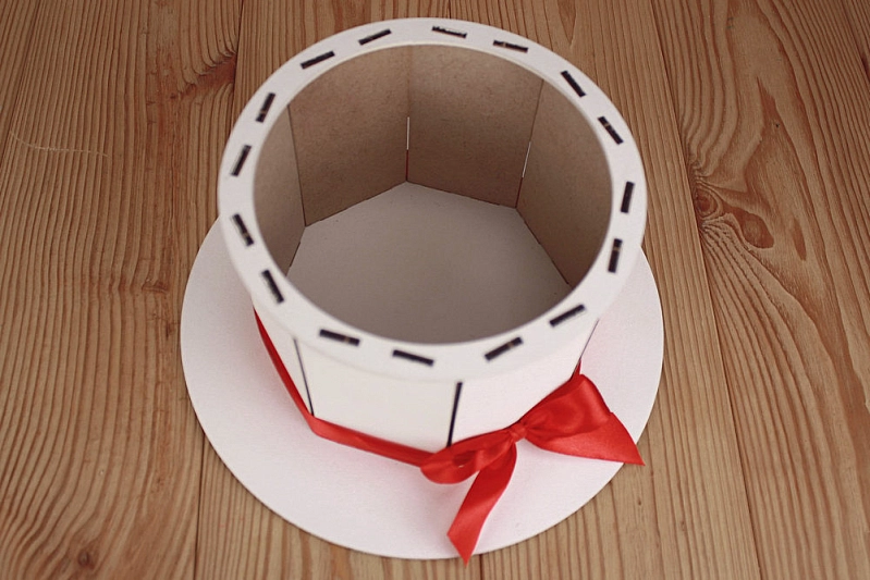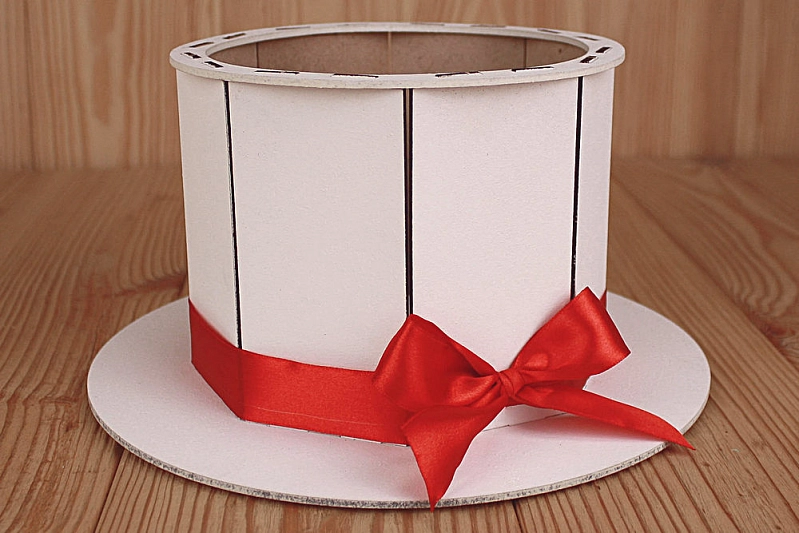 ПУ656-02-0306 Подарочная упаковка "Шляпа" (24,5*24,5*12,5) МДФ 3мм, окрашен., оформл., Белый-красный, 1 шт.
