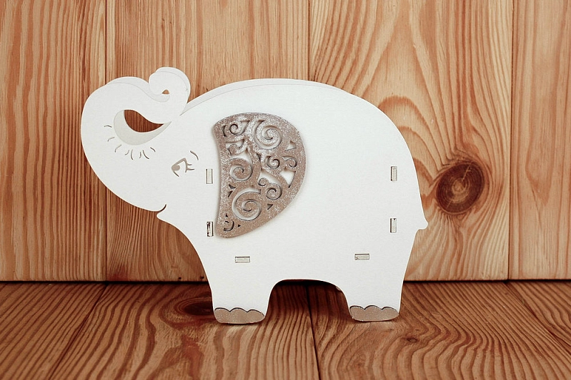 ПУ784-02-0302 Подарочная упаковка "Слоник" малый (19*7*14) МДФ, окрашен., оформл., Белый-серебро, 1 шт.