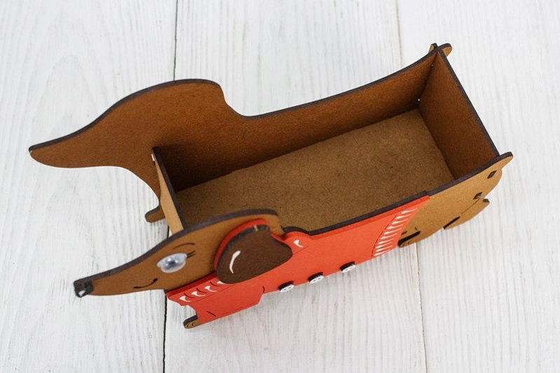 ПУ824-02-3706 Подарочная упаковка "Такса" (21*7*15) МДФ, окрашен. морилкой, оформл., Дуб-красный, 1 шт.