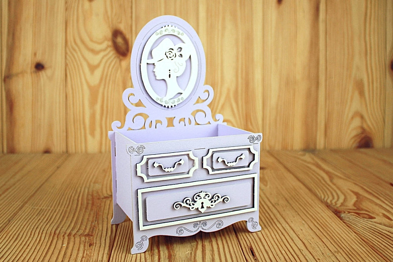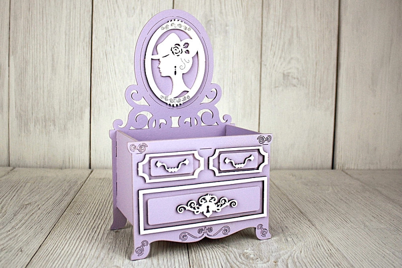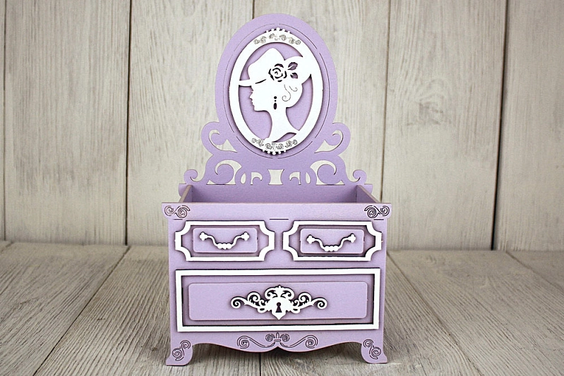 ПУ735-02-4003 Подарочная упаковка "Трюмо "Винтаж" (14,5*9*23,5) МДФ, окрашен., оформл., Сиреневый пастель-белый, 1 шт.