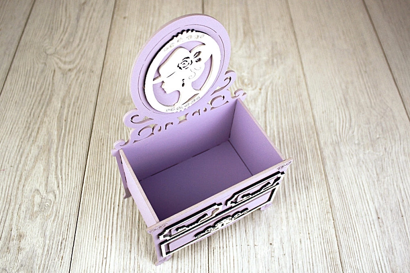 Изготовленная из качественного МДФ, эта упаковка выглядит элегантно и изысканно. 🌸 Нежный сиреневый пастель в сочетании с белым создают романтичное настроение.