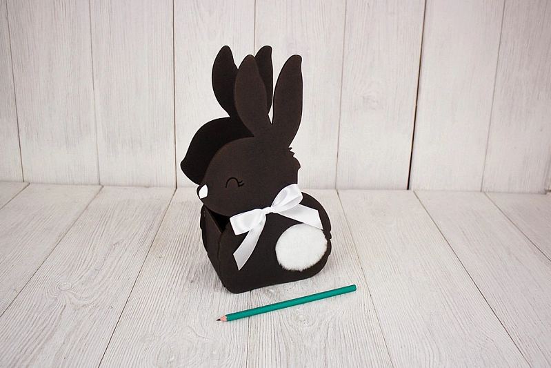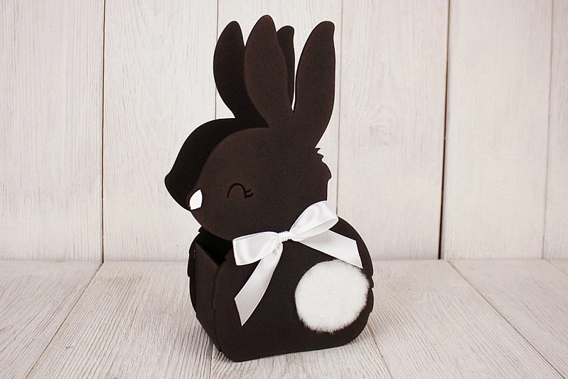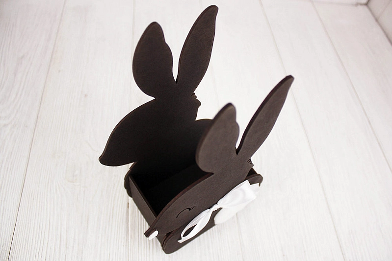 ПУ728-02-5003 Подарочная упаковка "Зайка" большой (16*9*27,5) МДФ 3мм, окрашен. морилкой, оформл., Эбен. дерево\колер-белый, 1 шт.