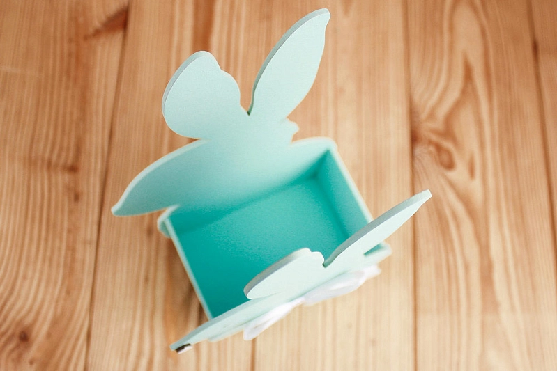 ПУ728-02-4103 Подарочная упаковка "Зайка" большой (16*9*27,5) МДФ 3мм, окрашен., оформл., Тиффани пастель-белый, 1 шт.