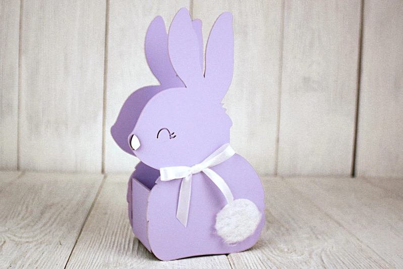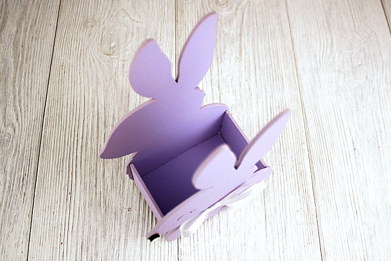 ПУ726-02-4003 Подарочная упаковка "Зайка" малый (13*7,5*22) МДФ 3мм, окрашен., оформл., Сиреневый пастель-белый, 1 шт.