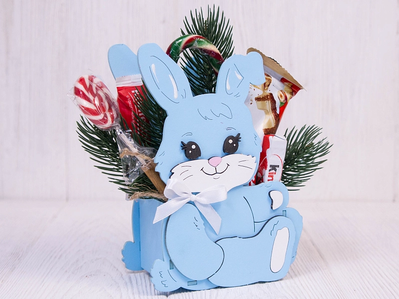 Ищете оригинальный способ преподнести подарок? Тогда эта очаровательная подарочная упаковка в виде голубого зайки – идеальный выбор! Она не только защитит ваш презент, но и добавит ему нотку милоты и нежности. 🥰