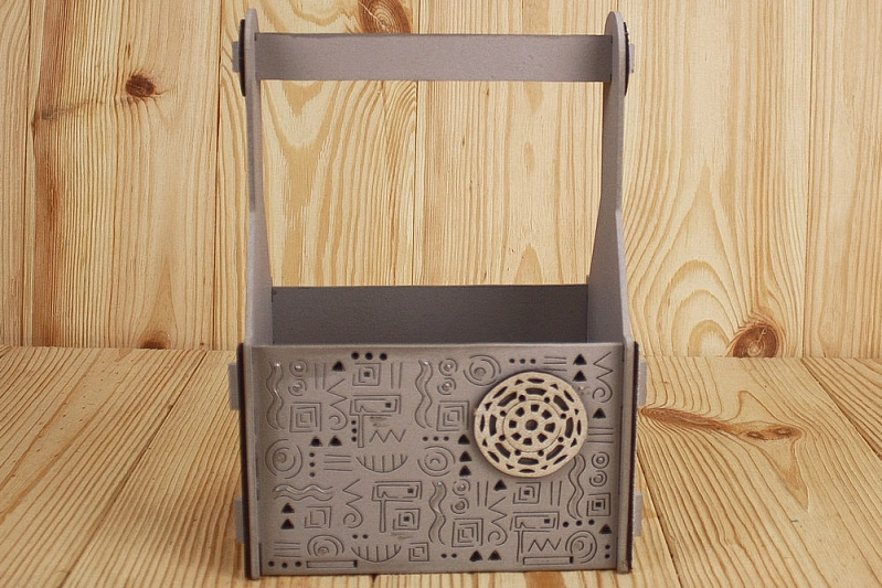 ПУ525-00-2002 Подарочный ящик "Греческий" с ручкой (17*11*23,2) МДФ 3мм, окрашен., оформл., Серый-серебро, 1 шт.