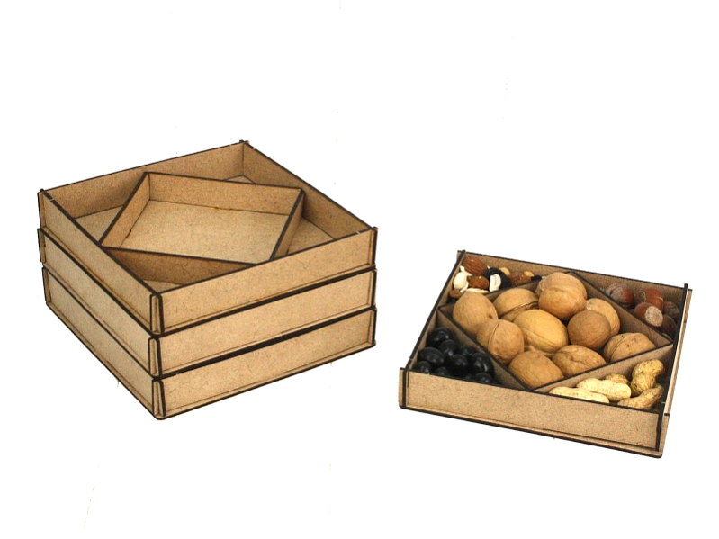 ПУ854-00-0000 Ящик маленький с перегородками №1 (17*17*2,5) МДФ, Уп-4 шт. СОБРАННЫЙ