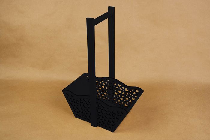 Корзинка с сердечками (24*12,5*36) МДФ 3мм, дерево, фанера 8мм, окрашен., Черный, 1 шт.