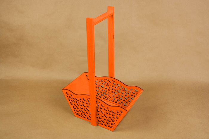 Корзинка с сердечками (24*12,5*36) МДФ 3мм, дерево, фанера 8мм, окрашен., Оранжевый, 1 шт.