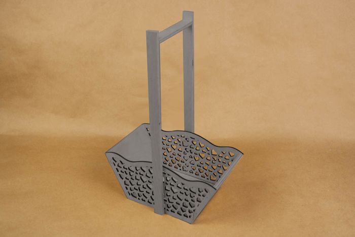 Корзинка с сердечками (24*12,5*36) МДФ 3мм, дерево, фанера 8мм, окрашен., Серый, 1 шт.