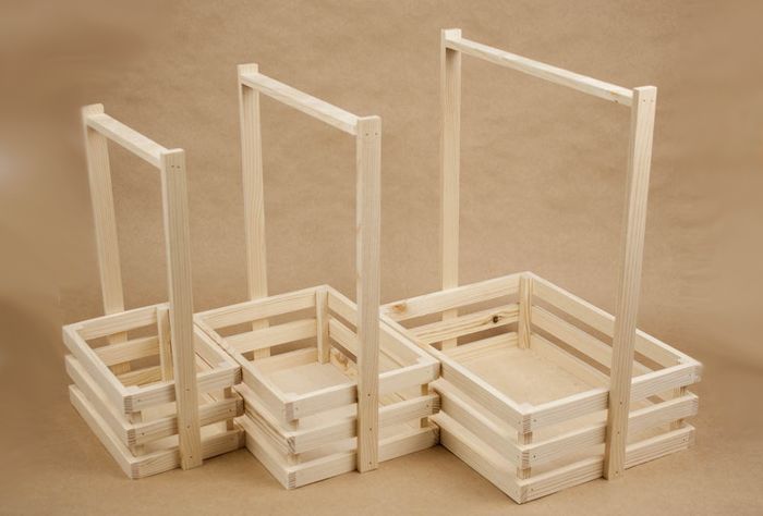 Набор ящиков реечных с ручками (20*13*33; 25*18*36,5; 30*23*40) Дерево, МДФ 3мм, неокраш., Набор 3шт