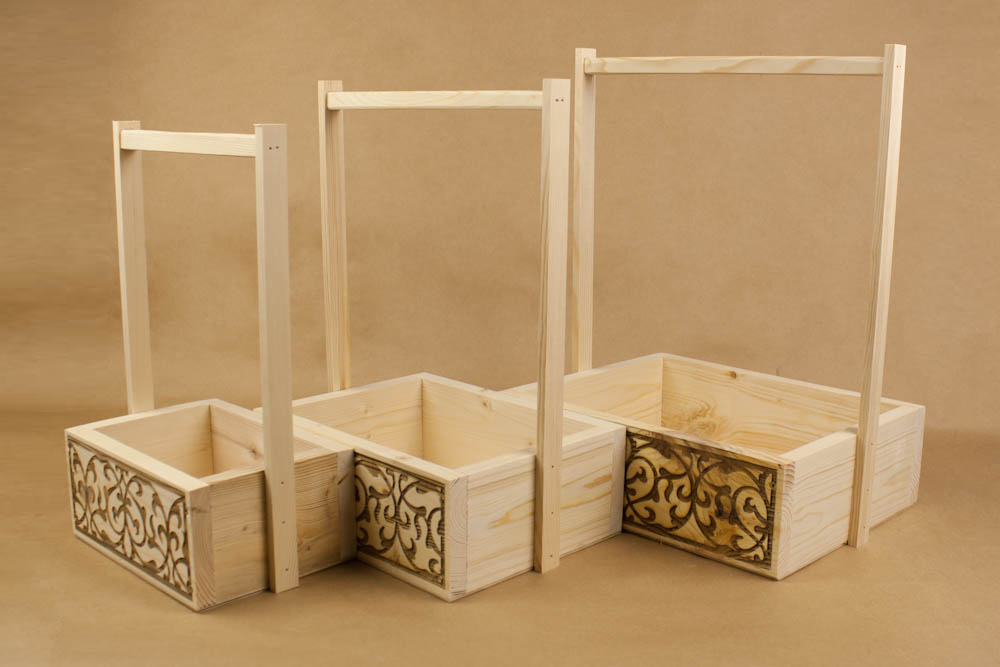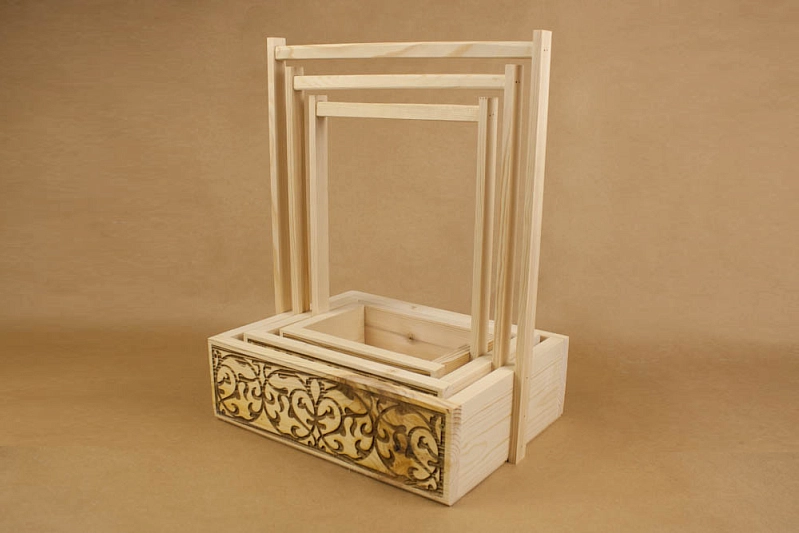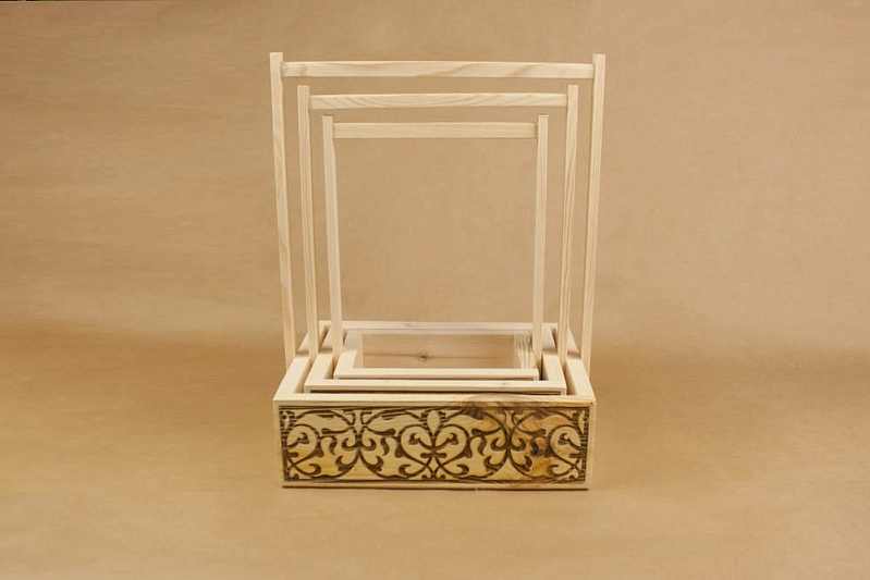 Я103-00-0000 Набор ящиков с гравировкой №2, с деревянными ручками (30*24*9; 25*19*9; 20*14*9) Фанера 3мм, дерево, Набор - 3 шт.
