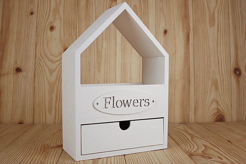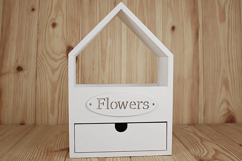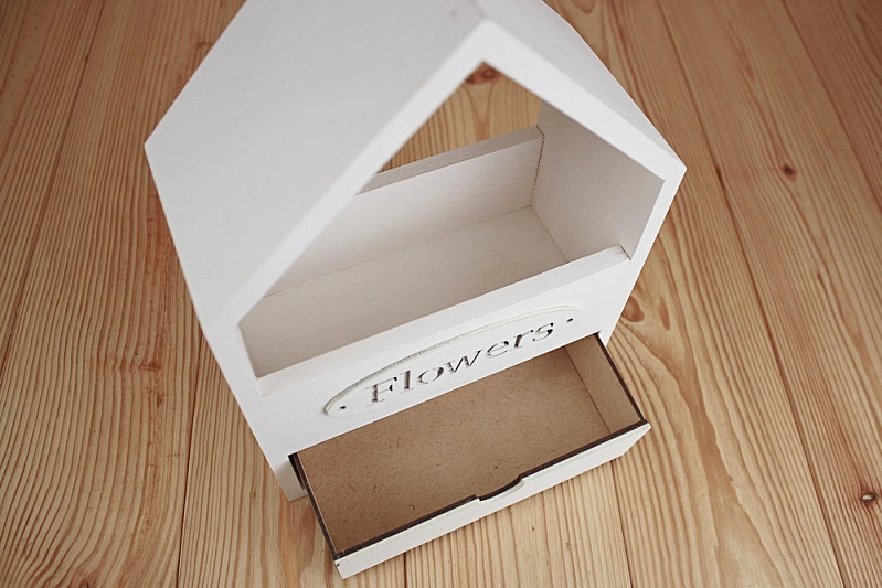 Подарочный ящик-домик с ящичком "Flowers" (20,5*10*30,5) Дерево, МДФ 3мм, окрашен., оформл., Белый-белый, 1 шт.