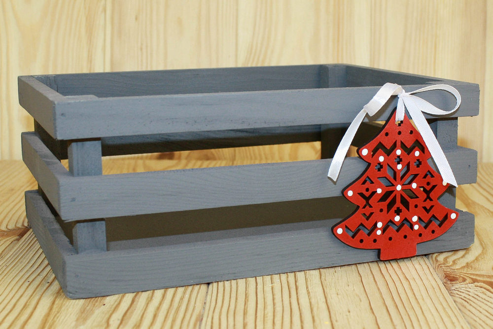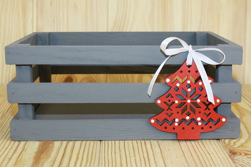 Подарочный ящик с ёлкой (25*18*10) Дерево, МДФ 3мм, окрашен., Серый-красный, 1 шт.