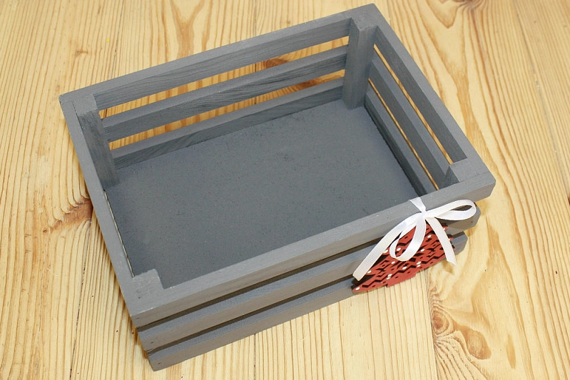 Я216-02-2006 Подарочный ящик с ёлкой (25*18*10) Дерево, МДФ 3мм, окрашен., Серый-красный, 1 шт.