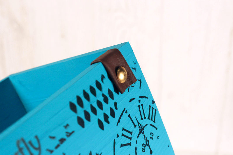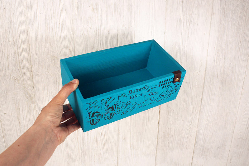 Благодаря использованию УФ-печати, изображение бабочек наносится на поверхность ящика максимально четко и долговечно, не выгорает и не трескается. Бирюзовый цвет придает ящику свежесть и легкость, идеально вписываясь в различные стили интерьера – от прованс до скандинавского.