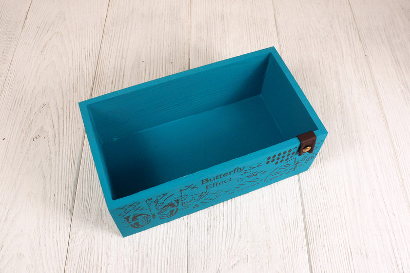 Ящик деревянный "Эффект бабочки" (25*14*9,5) дерево, МДФ, УФ печать, окраш., оформл., Бирюзовый, 1шт.