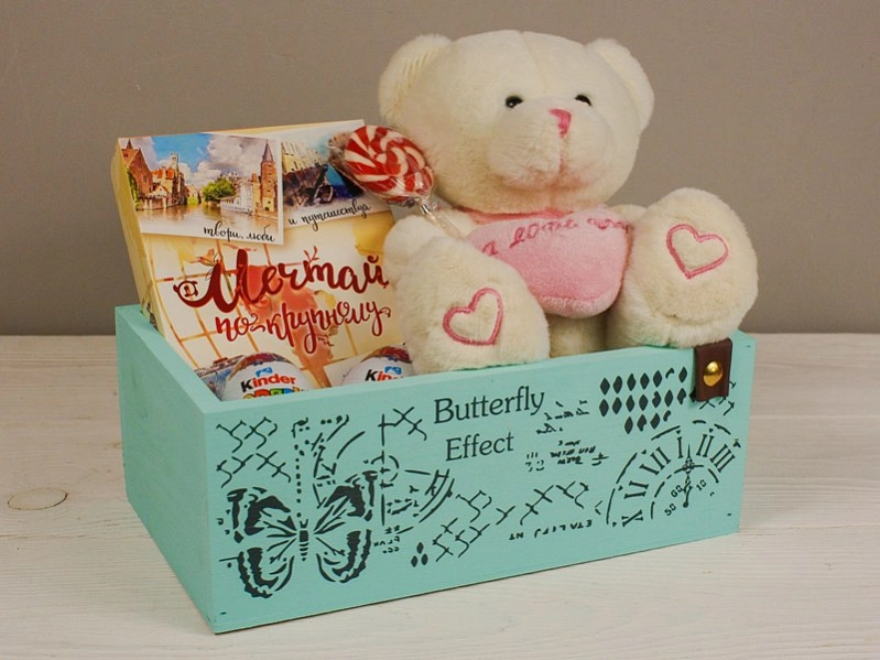 Ящик деревянный "Эффект бабочки" (25*14*9,5) дерево, МДФ, УФ печать, окраш., оформл., Тиффани пастель, 1шт.