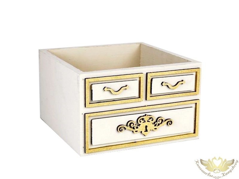 Ящик деревянный "Комод"малый (15*15,5*9) дерево, МДФ, окрашен., оформл., Айвори-золото, 1шт.