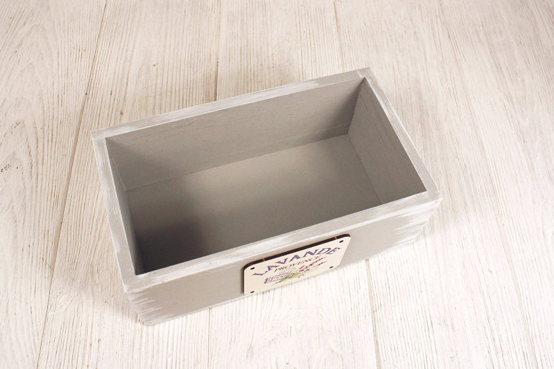 Ящик деревянный "Лаванда" большой (25*14*9,5) дерево, МДФ, окрашен., оформл., Серый пастель, 1шт.