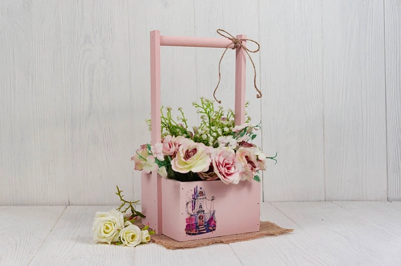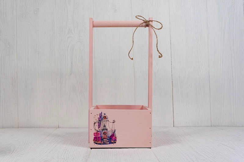 Ящик деревянный "Macaron" (16,5*15*33) Дерево, УФ печать, окраш., оформл., Пудровый, 1шт.