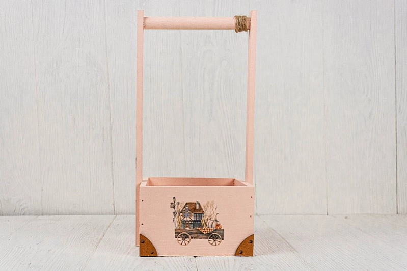 Ящик деревянный "Прованс" (16,5*15*33) Дерево, УФ печать, окраш., оформл., Пудровый, 1шт.