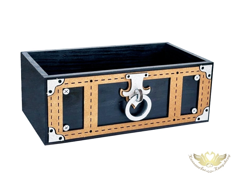 - Оформление: Ящик окрашен морилкой и оформлен, что придает ему изысканный вид.