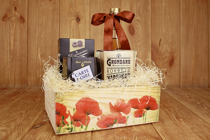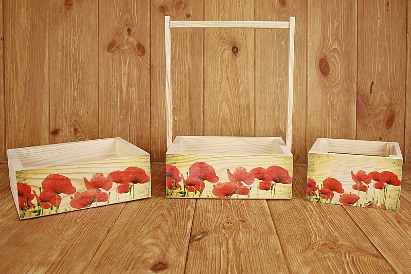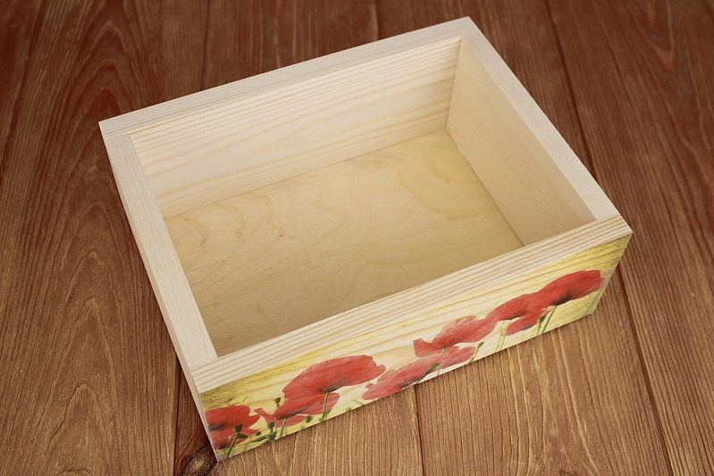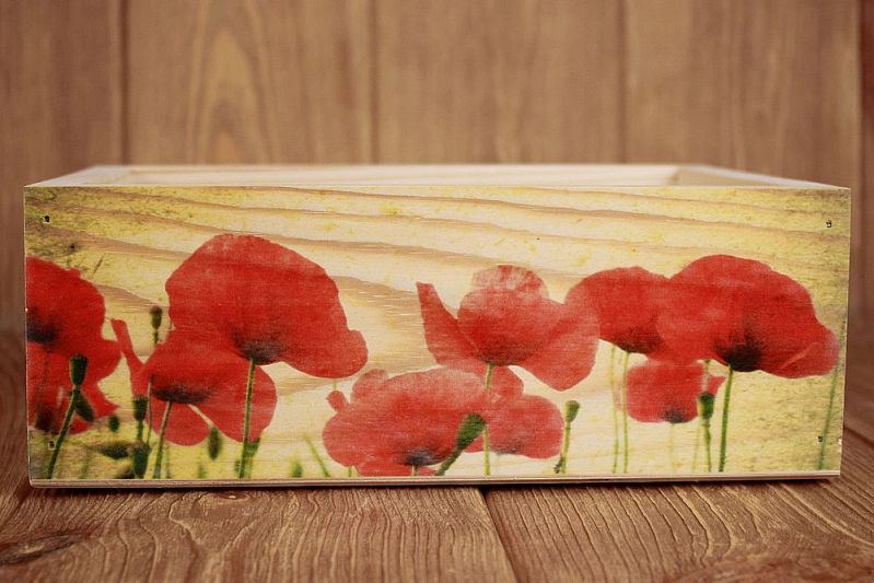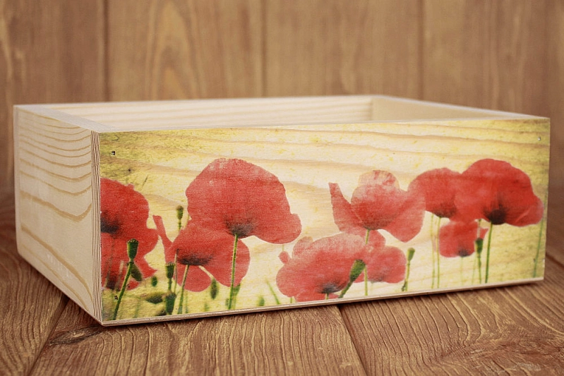 Ящик из массива "Маки" большой (25*19*9) Дерево, фанера 3мм, неокраш., УФ печать, 1 шт.
