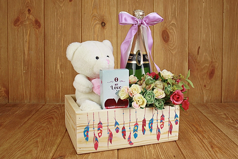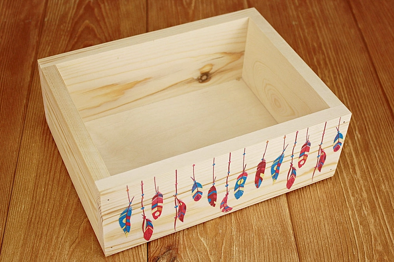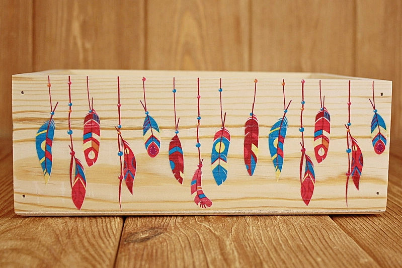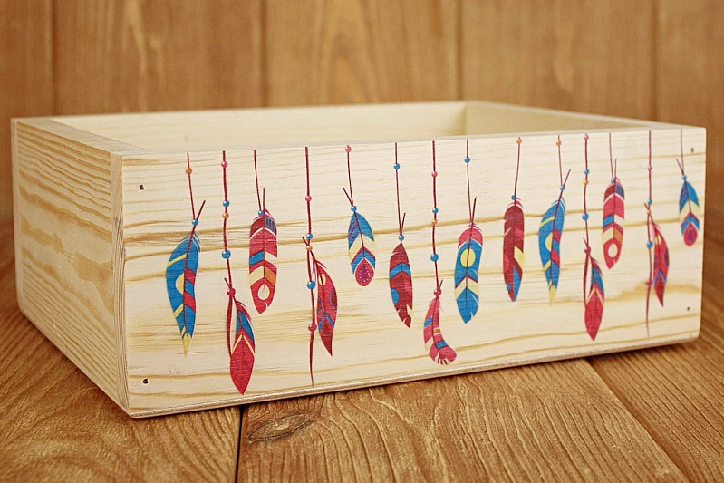 Ящик из массива "Перья" (25*19*9) Дерево, фанера 3мм, неокраш., УФ печать, 1 шт.