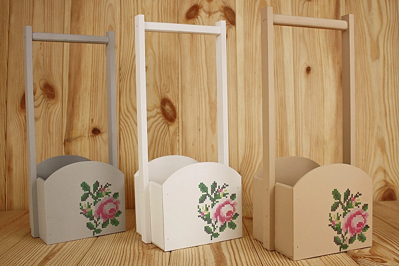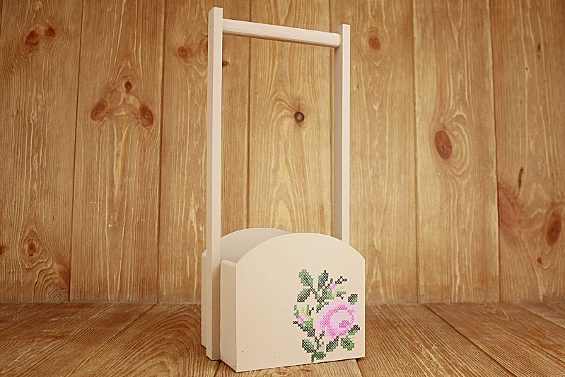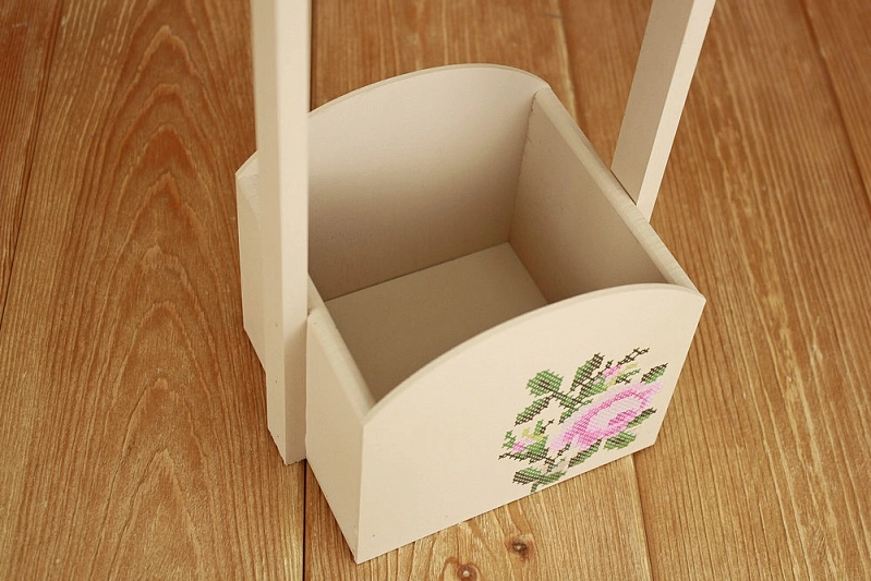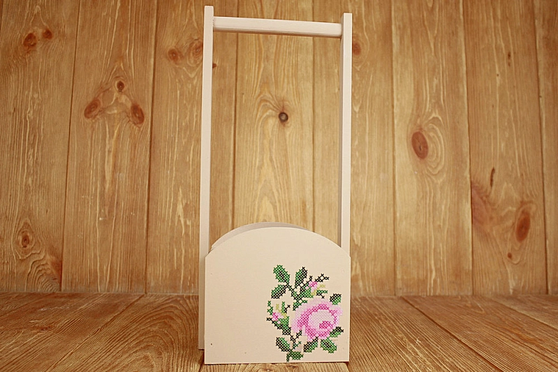 Ящик-корзинка "Роза. Вышивка" (15,5*13*36,5) Фанера 3мм, дерево, фанера 8мм, окраш., УФ печать., Бежевый, 1шт.