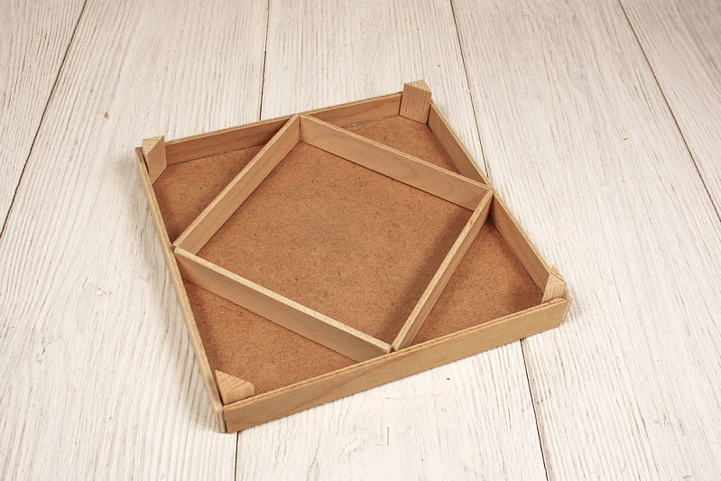 Ящик маленький с перегородкой "квадрат" (18,5*18,5) Фанера, МДФ, Собранный, 1 шт.
