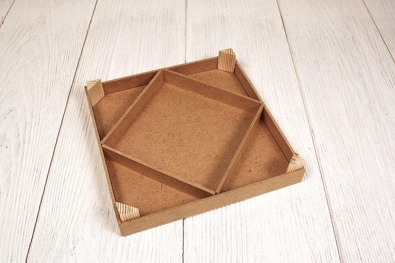Ящик маленький с перегородкой "квадрат" (18,5*18,5) МДФ, Собранный, 1 шт.