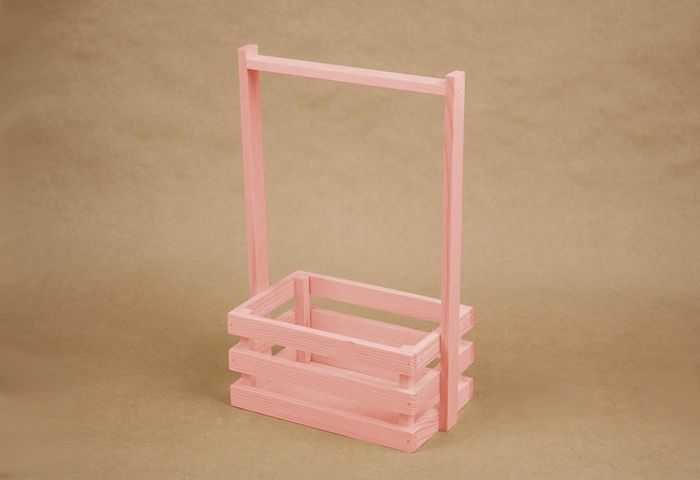 Ящик реечный №3 с ручкой (20*13*33) Дерево, МДФ 3мм, окрашен., Розовый, 1 шт.