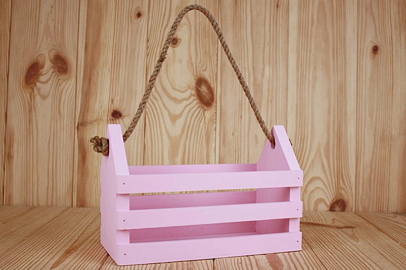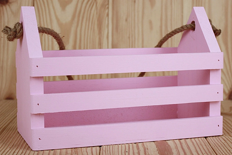 Я236-02-3939 Ящик реечный "Домик" большой (24*12*16) Дерево, МДФ 3мм, окрашен., оформл., Розовый пастель, 1 шт.