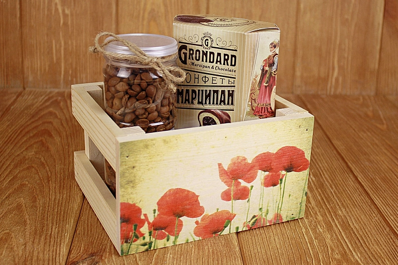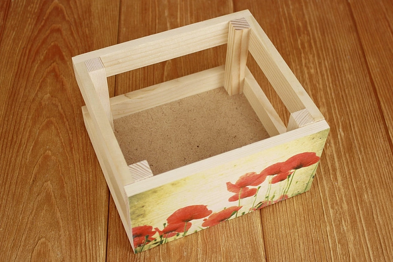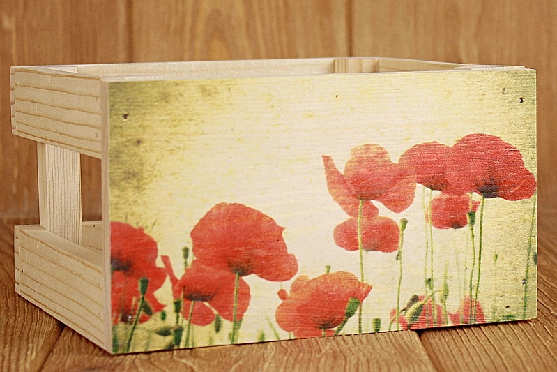 Ящик реечный "Маки" малый (17,5*15*10) Дерево, МДФ 3мм, неокраш., УФ печать, 1 шт.