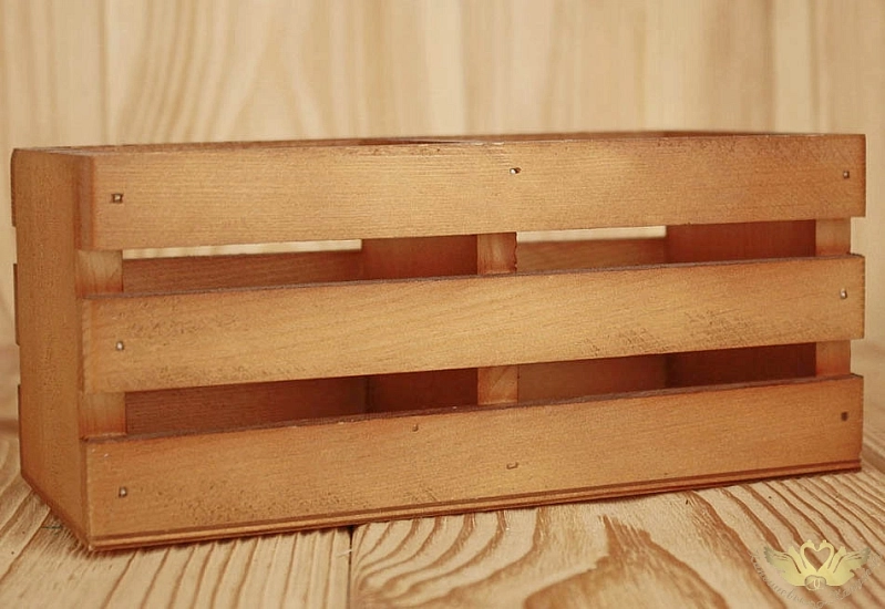- Оформление: Покрытие морилкой подчеркивает естественную красоту дерева и придает ящику благородный вид.