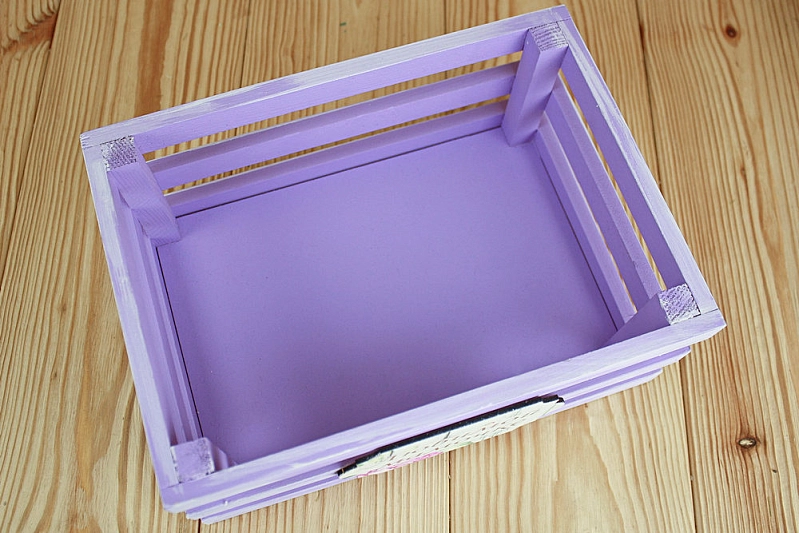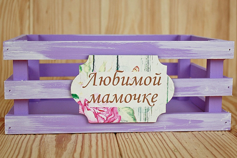 Ящик реечный с шильдом "Любимой мамочке" (25*18*10) Дерево, МДФ 3мм, окрашен., оформл., Сиреневый-белый, 1 шт.
