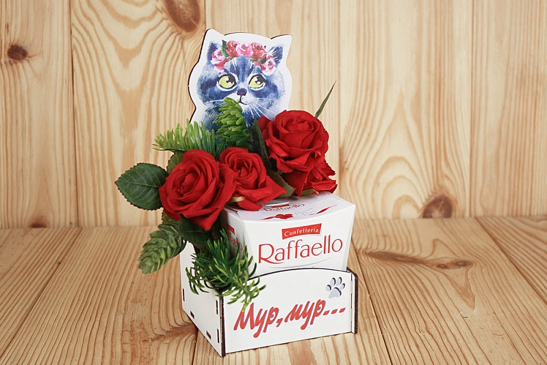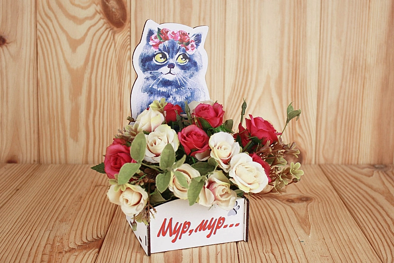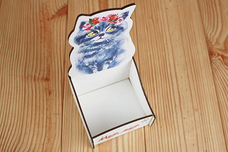 ПУ631-02-0300 Подарочная упаковка "Мур, мур..." (10*9,5*20) МДФ 3мм, УФ печать, окраш., оформл., Белый, 1 шт.