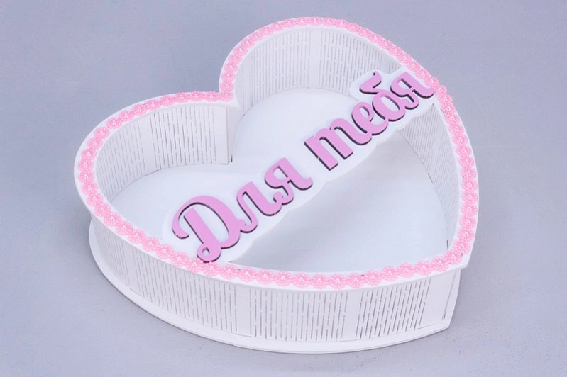 ПУ705-02-0305 Подарочная упаковка-сердце "Для тебя" (24*25*6,5) МДФ 3мм, окрашен., оформл., Белый-розовый, 1 шт.