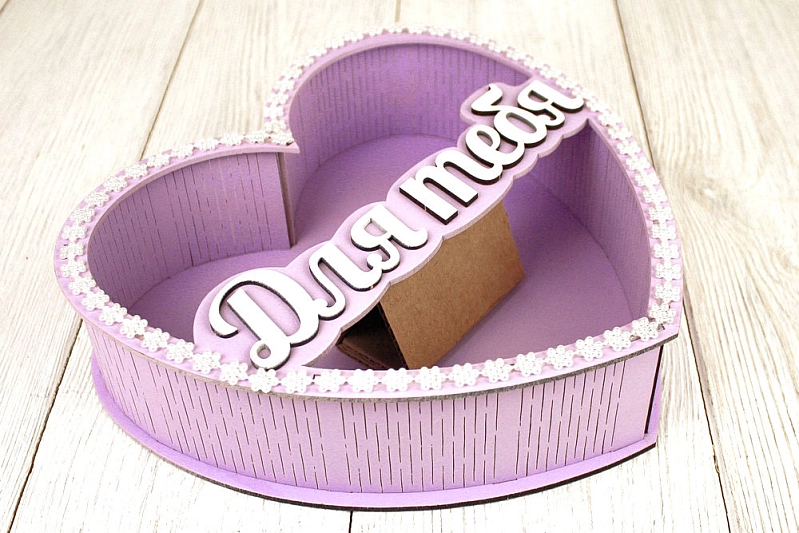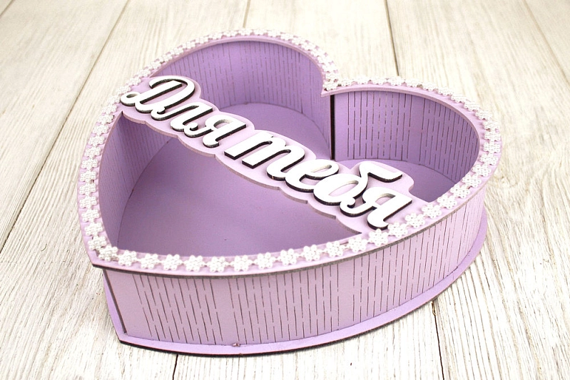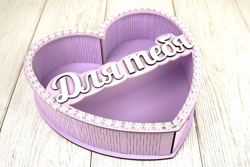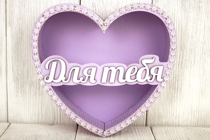 ПУ705-02-4003 Подарочная упаковка-сердце "Для тебя" (24*25*6,5) МДФ 3мм, окрашен., оформл., Сиреневый пастель-белый, 1 шт.