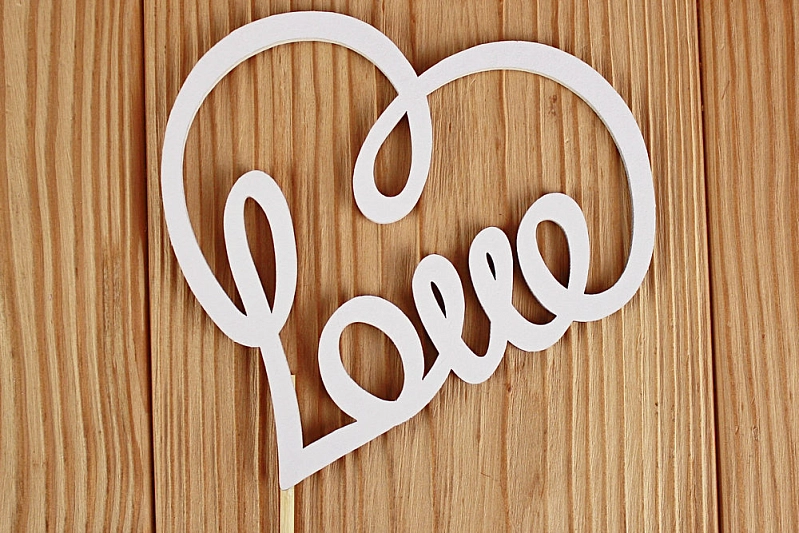 Тп333-04-0303 Топпер "Love" сердечком (10,5*30) МДФ 3мм, окрашен. на шпажке, Белый, 1 шт.